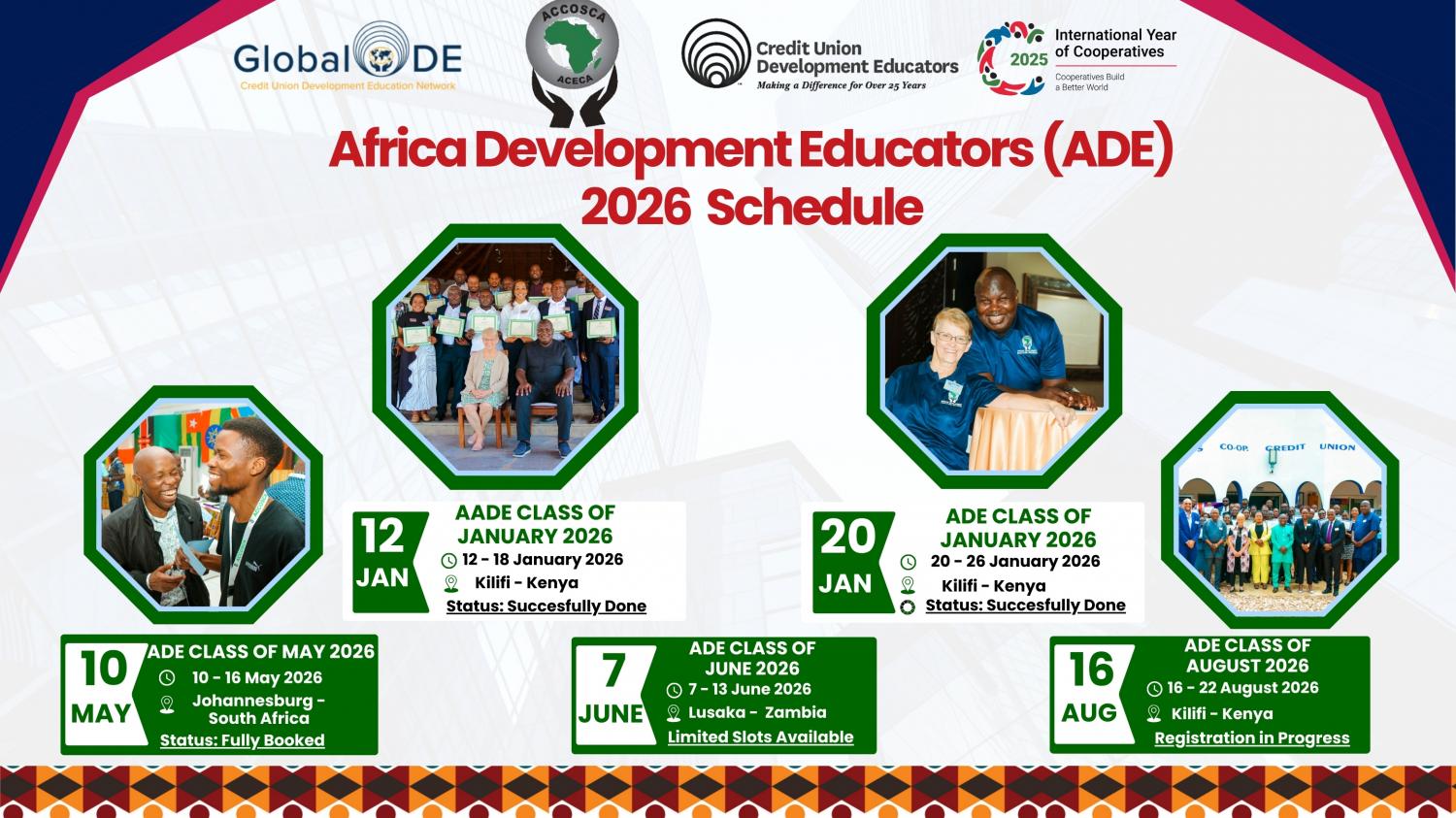 The Global Credit Union Development Education (Global DE) program is designed to provide credit union employees and volunteers with a greater understanding of the international credit union system and opportunities for continued engagement.